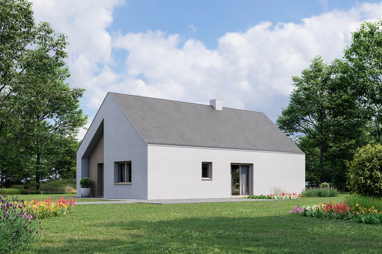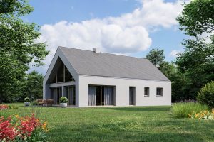 Hiša Alenka je moderna dvokapnica, primerna za manjšo družino ali vikend. Na 90 m² površine ima poleg spalnice še dodatno manjšo sobo ali kabinet, dnevni prostori pa so združeni v obliki črke L. Kuhinja ima poleg običajnih delovnih površin previden tudi kuhijski otok, ki se lepo nadaljuje v odprt jedilni del z izhodom na teraso.