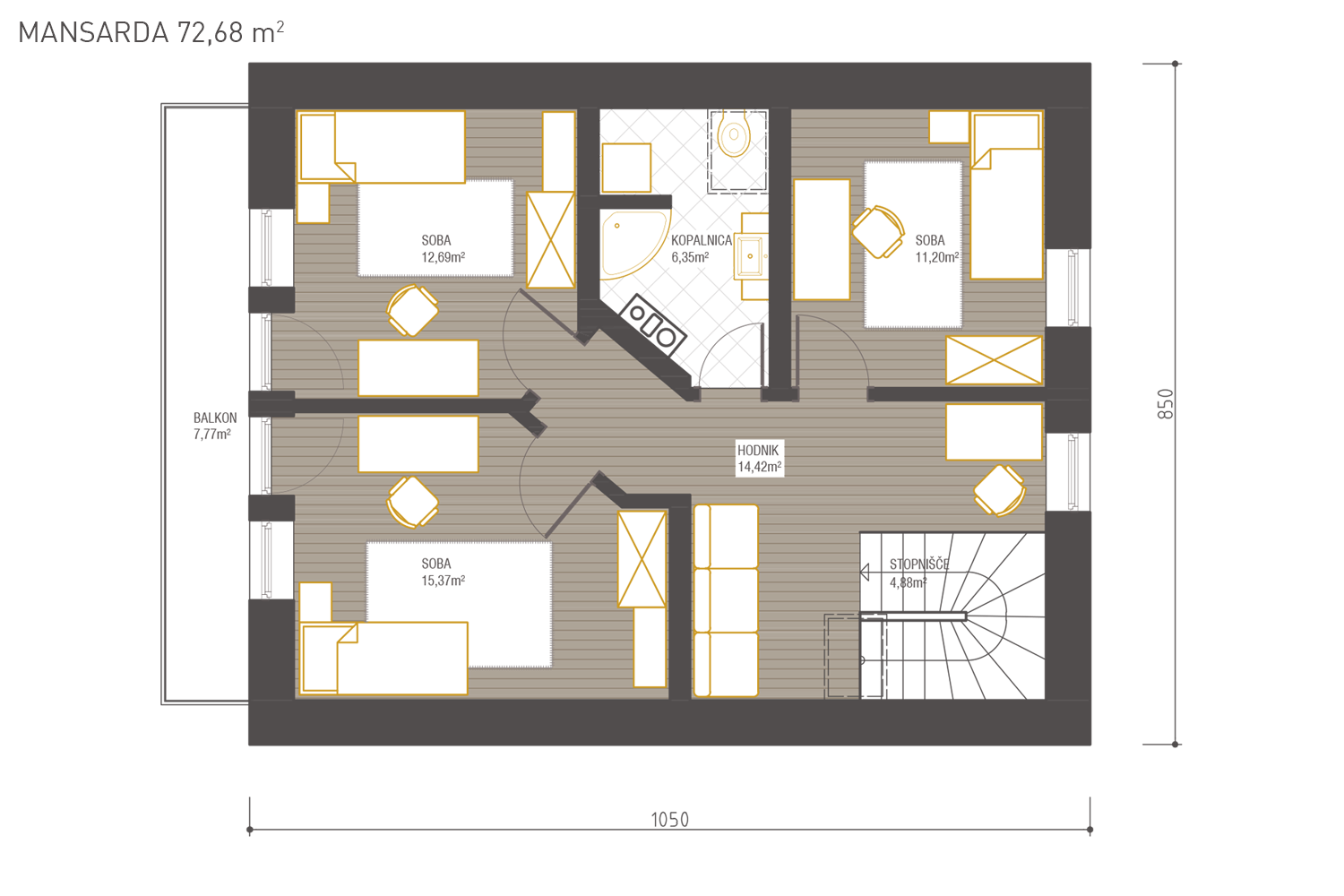 Janja je tipična podeželska hiša, primerna za gradnjo na večinih ruralnih območij. Prostorna in primerno razgibana nudi dovolj prostora za vse člane družine.