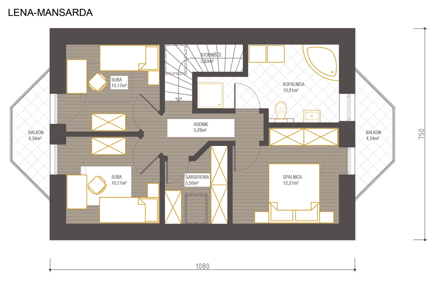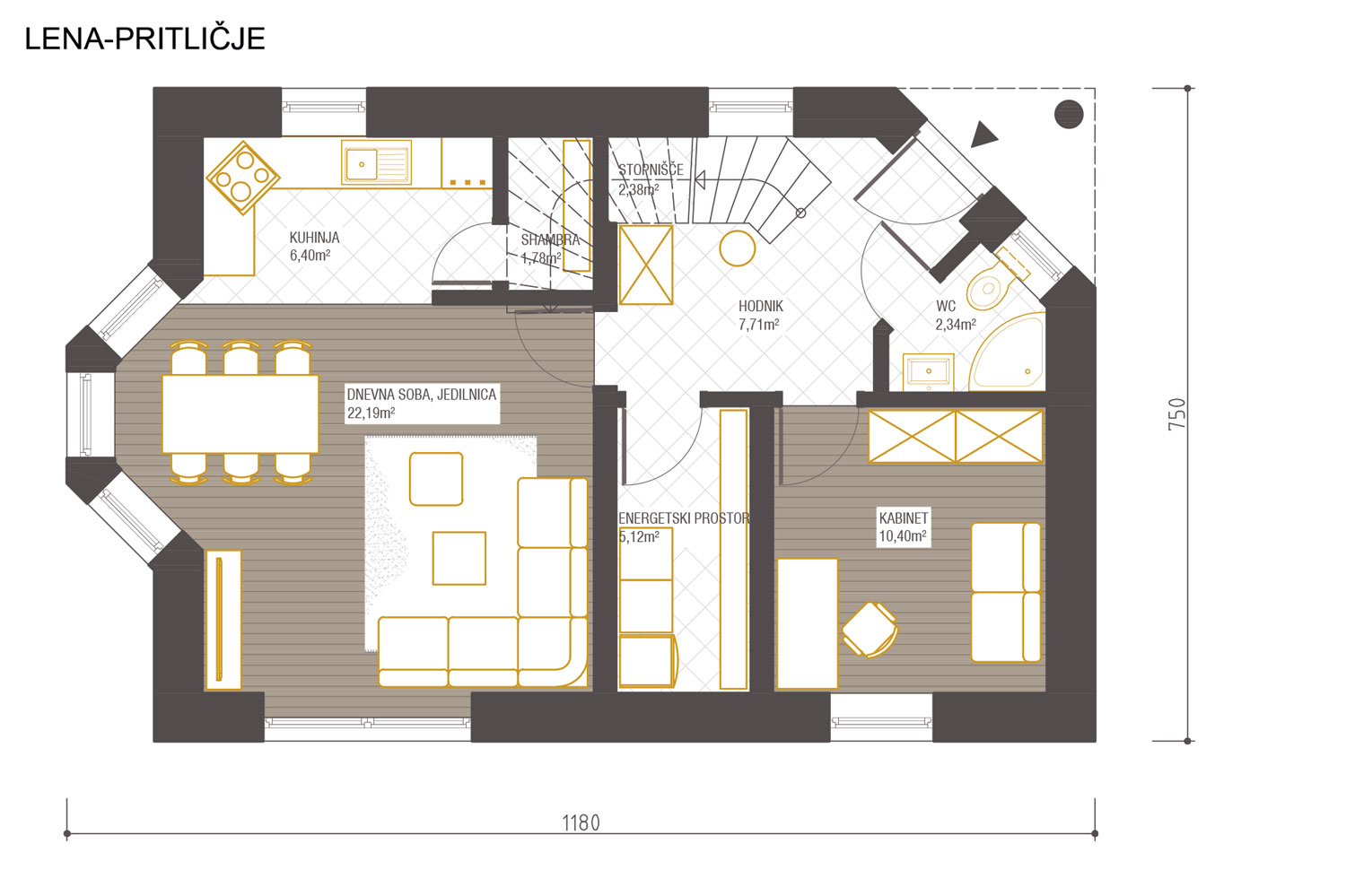 Hišo Lena odlikuje na pogled zelo prijazna oblika, primerna za umestitev v mesto ali na podeželje. V spodnjih bivalnih prostorih nudi veliko naravne svetlobe, v zgornjih spalnih prostorih pa so predvideni tudi balkoni.