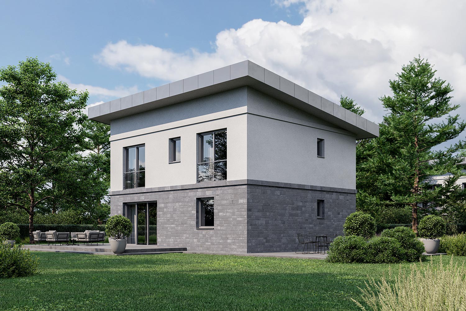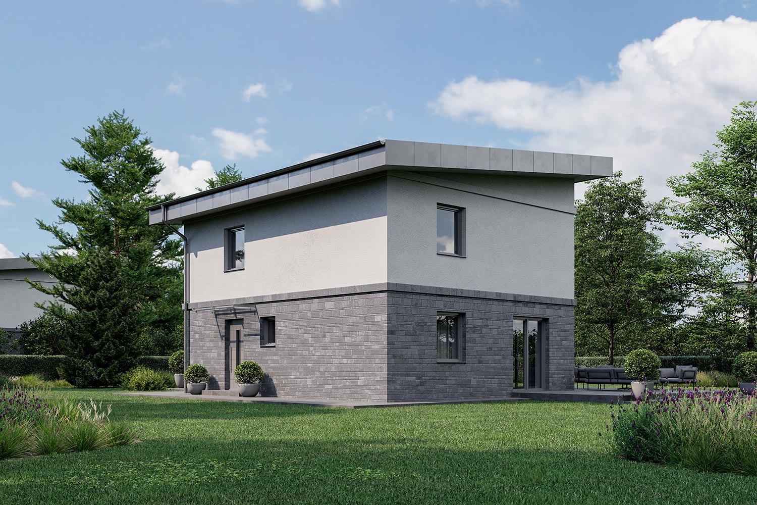 Sodobno zasnovana hiša v obliki kocke je odlična rešitev za štiričlansko družino. Ločeni bivalna in spalna etaža omogočata optimalno prilagajanje vsakemu v družini. Moderna Livia z zunanjo teraso je kot nalašč za ljudi s posebnim stilom.
