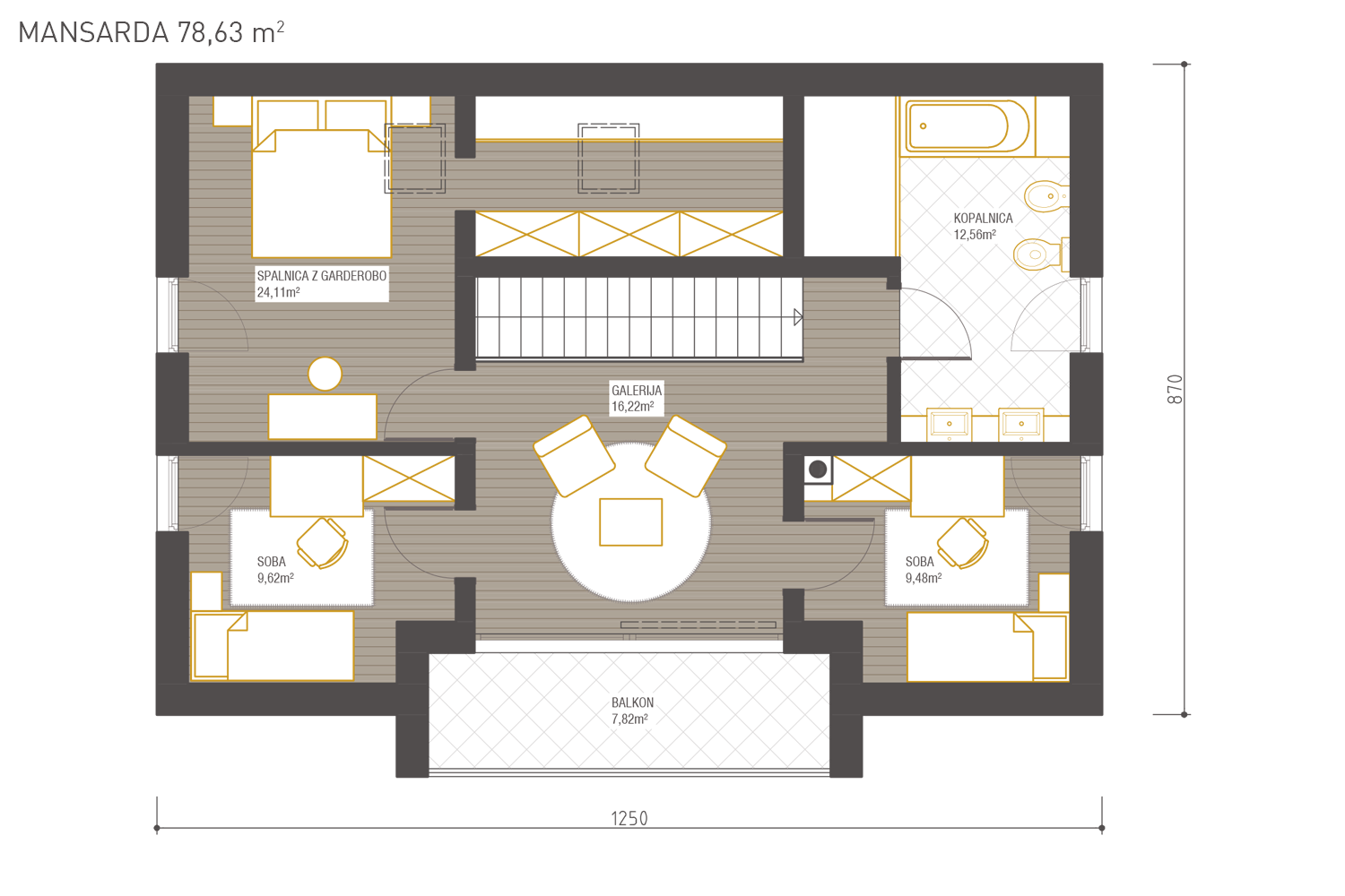Izvedba medetažne armirano betonske plošče, v hišah, kjer je to predvideno s projektom PZI. Stopnišče in dimnik nista zajeta v paketni ponudbi, lahko je predmet dodatnega naročila na podlagi potrjene ponudbe s strani naročnika.
