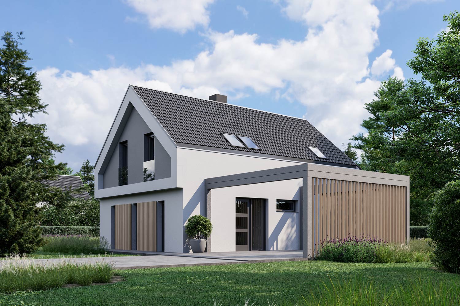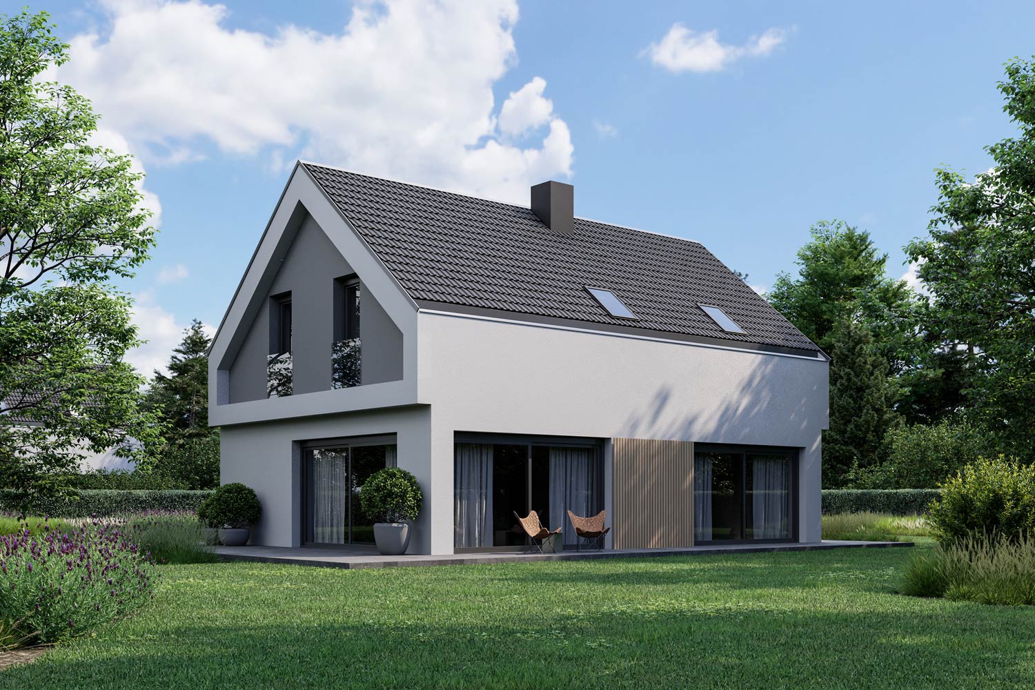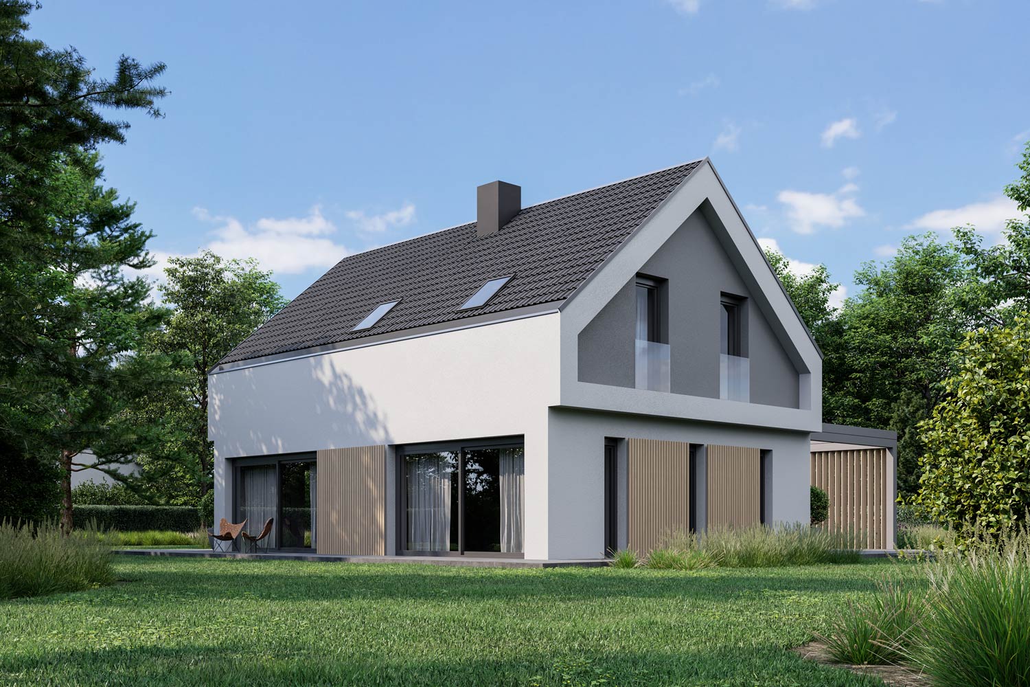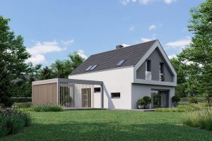 Atraktivna hiša Monika s svojo moderno arhitekturo izžareva prefinjenost in napredno naravnanost lastnika. Ujema se skoraj z vsako okolico, njeni detajli pa privabijo marsikateri pogled. Jedilnica in dnevna soba sta združeni s kuhinjo v eno linijo, v mansardi pa spalni prostori nudijo veliko osebnega prostora vsakemu članu družine.