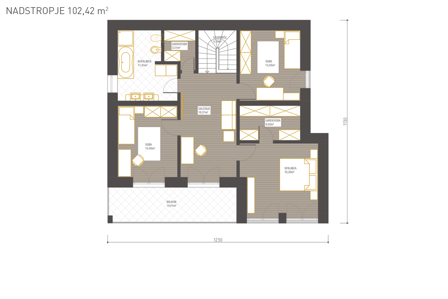 Izvedba medetažne armirano betonske plošče, v hišah, kjer je to predvideno s projektom PZI. Stopnišče in dimnik nista zajeta v paketni ponudbi, lahko je predmet dodatnega naročila na podlagi potrjene ponudbe s strani naročnika.