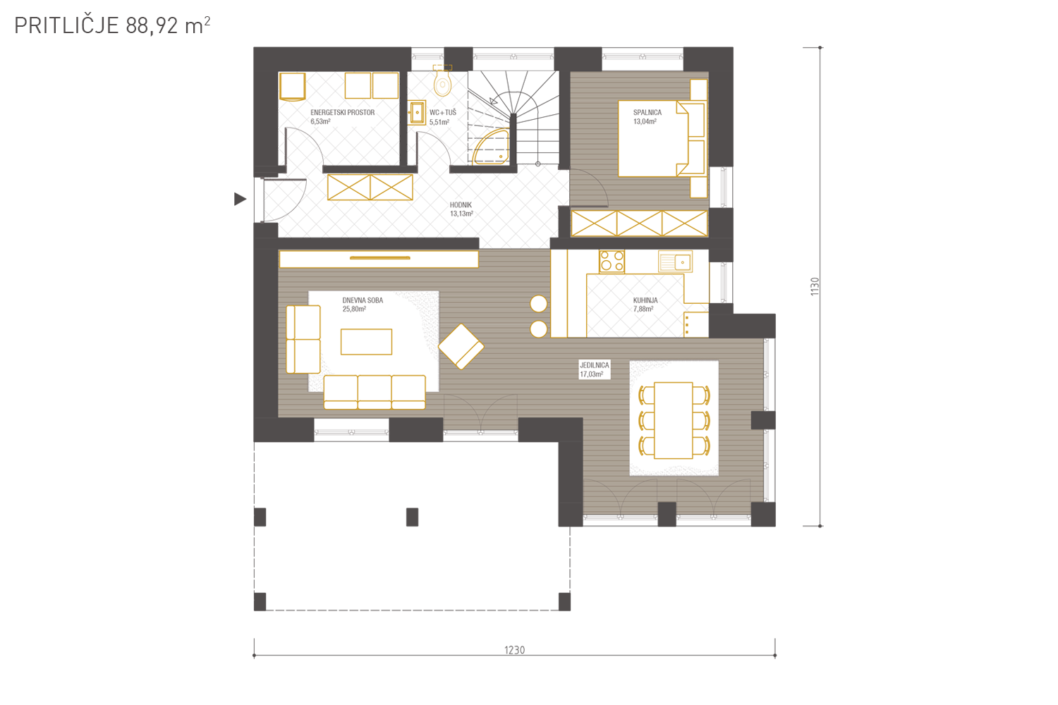 - notranjost je surova, brez estriha, ometov ter strojnih in elektro inštalacij