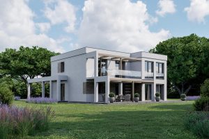 Razgibana zasnova hiše Okra z ravno streho ponuja pravo razkošje. Kombinacija lesa in kamna hišo s prostornimi sobami v nadstropju približa tudi ruralnim področjem. Hiša Okra ima poleg velike neto tlorisne površine tudi prijetno zgornjo in spodnjo teraso, primerno za sproščeno druženje ali počitek.