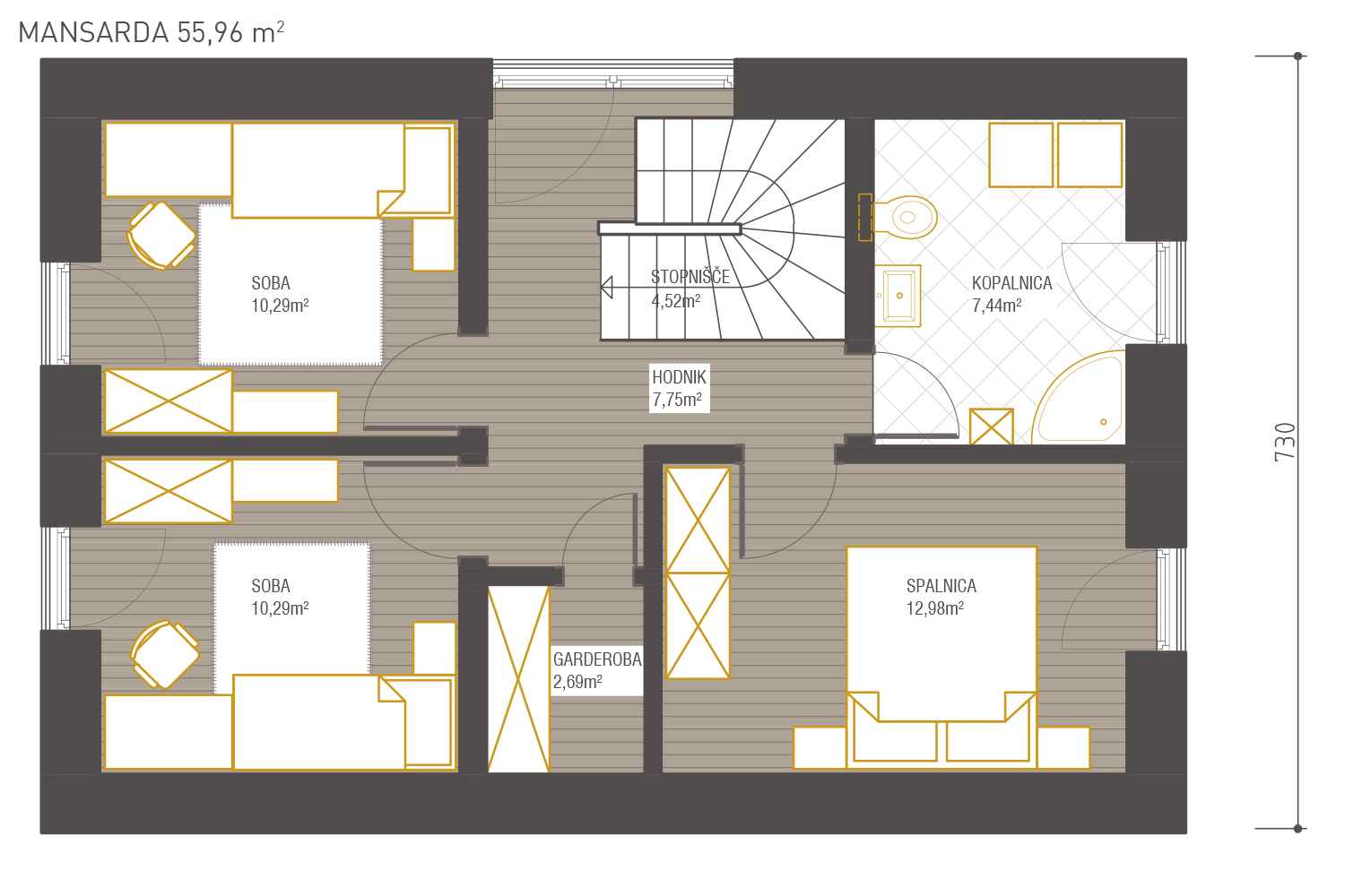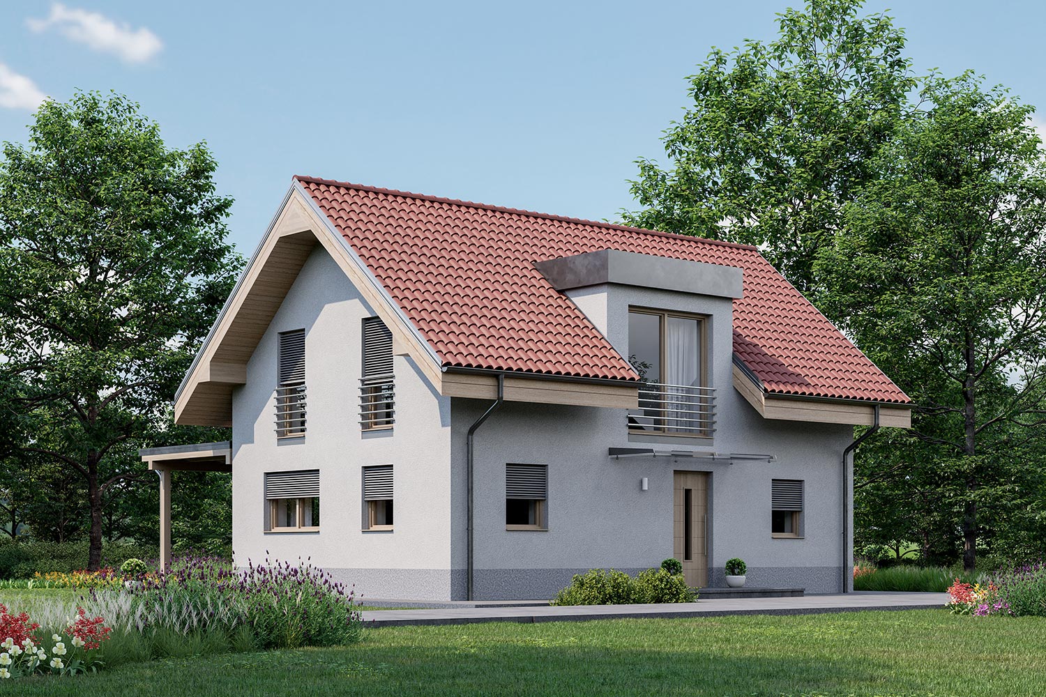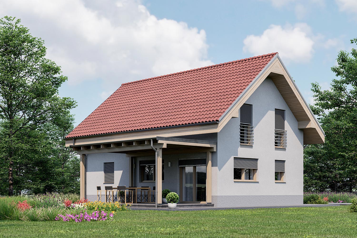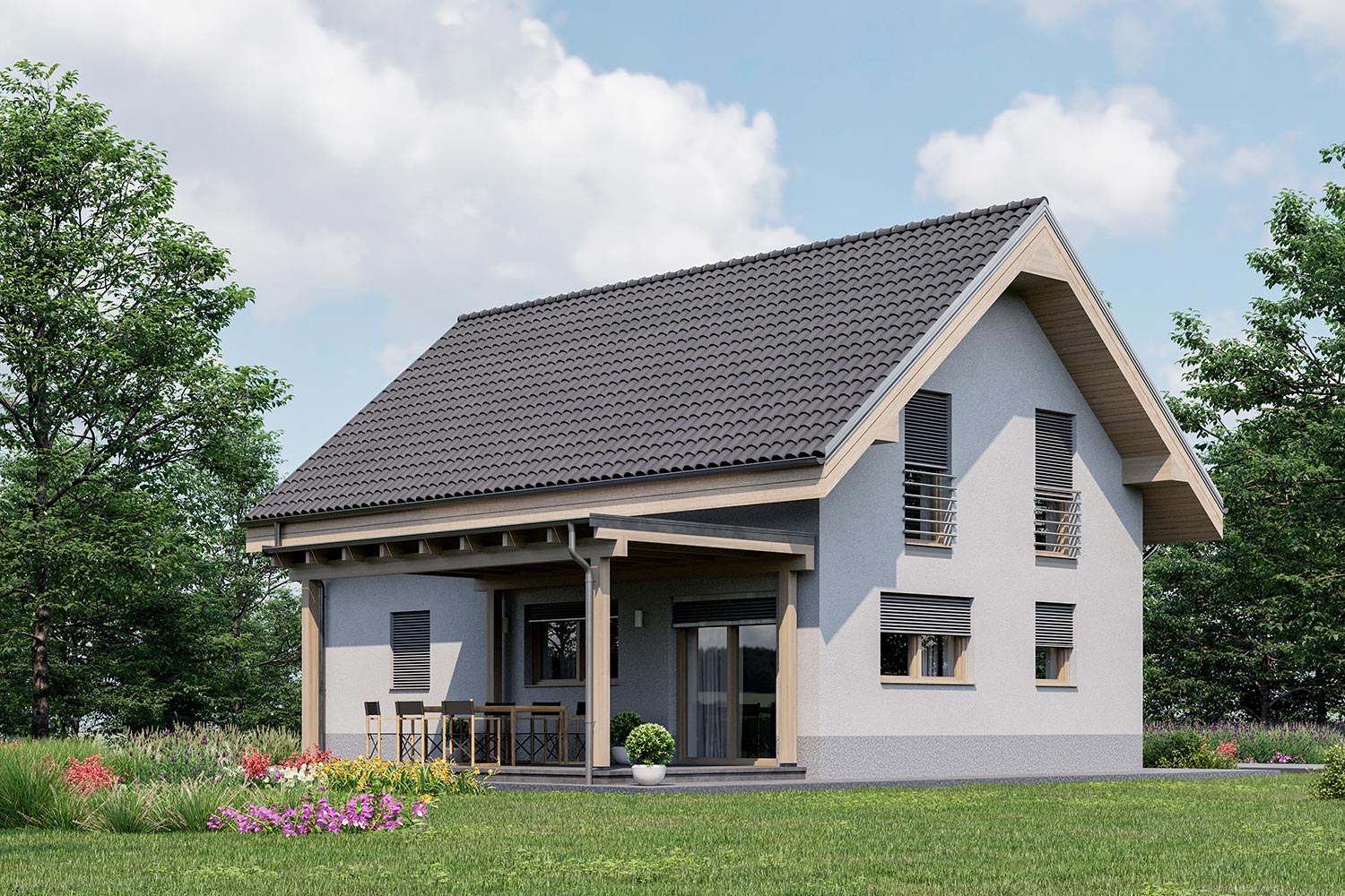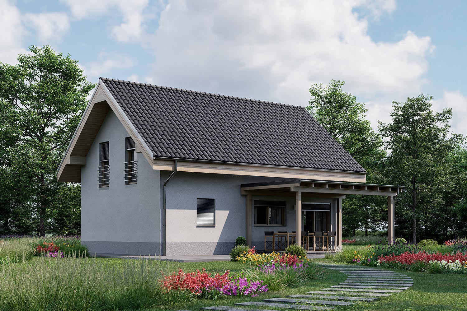 Sodobna, a vendar preprosta hiša Špela nudi razkošje bivanja na majhni površini. V dveh etažah so smiselno porazdeljeni bivalni in spalni prostori, z zunanjo teraso pa pridobite dodaten prostor za druženje in prosti čas.