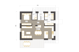 Hiša Taja ima vse značilnosti univerzalne hiše, ki je primerna za vse vrste slovenskih okolij. Dvokapnica ima v priličju dnevne prostore s kuhinjo in jedilnico predvidene v eni liniji, v zgornjih prostorih pa s tremi prostornimi sobami, garderobo in kopalnico hkrati nudi tudi veliko osebnega prostora za vsakega stanovalca.