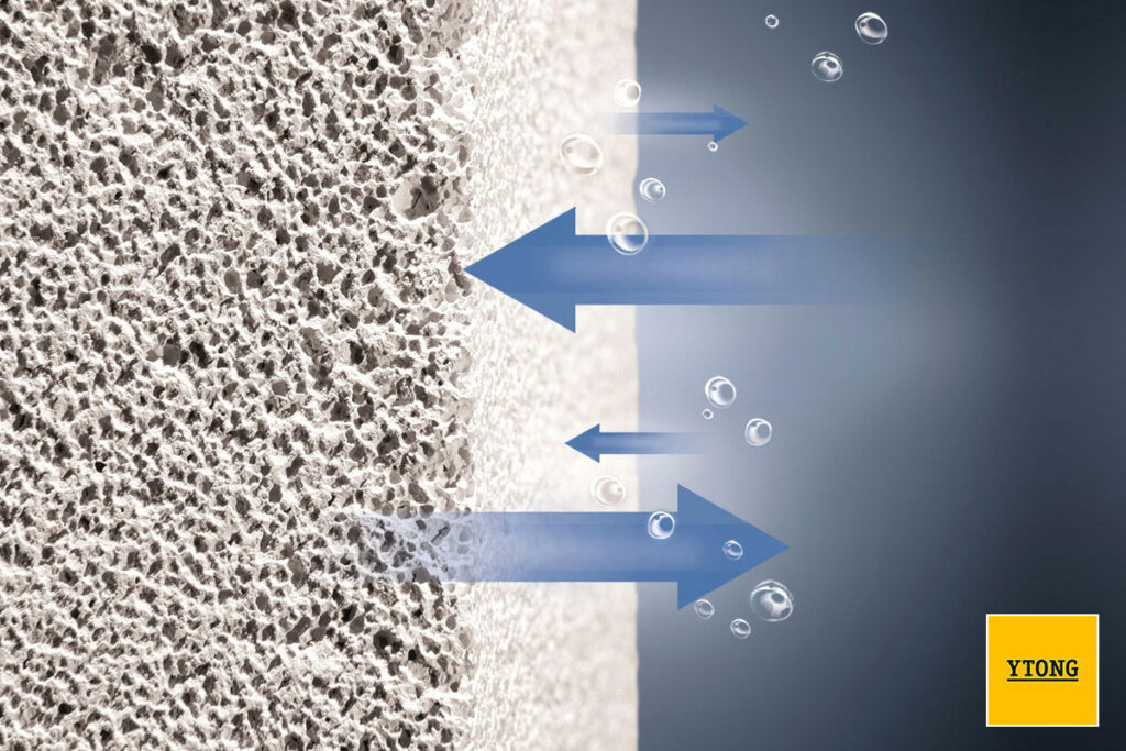 Zahvaljujoč naravni sestavi in povečani strukturi Ytong nevtralizira temperaturna nihanja in uravnava zračno vlago ter zagotavlja zdravo in udobno bivanje. Ytong odlikuje izjemna paroprepustnost, ki omogoča, da stene vašega doma »dihajo« z vami. Preprosto – globoko vdihnite in se sprostite!
